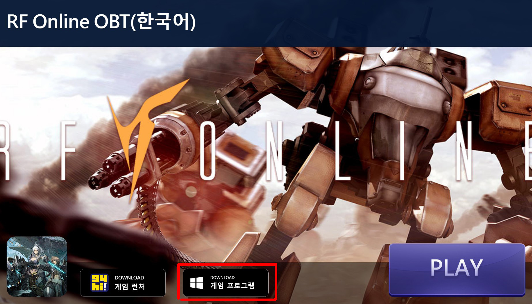 RF Online OBT(한국어)에서 게임프로그램을 다운받아서 설치해줍니다. 다운받은 파일은 RF온라인 클라이언트기 때문에 기존 설치된것과 같은 경로를 잡아주면 이미 설치되어있다고 설치가 안됩니다. 기존과 다른 경로를 잡아서 설치해주세요. 중간에 RF Online OBT용 게임런처도 함께 설치 되기 때문에 왼쪽에 게임런처는 따로 다운받으실 필요 없었습니다.